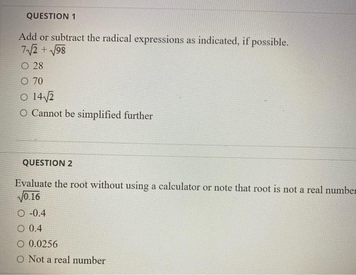 Solved Question 1 Add Or Subtract The Radical Expressions As Chegg Com