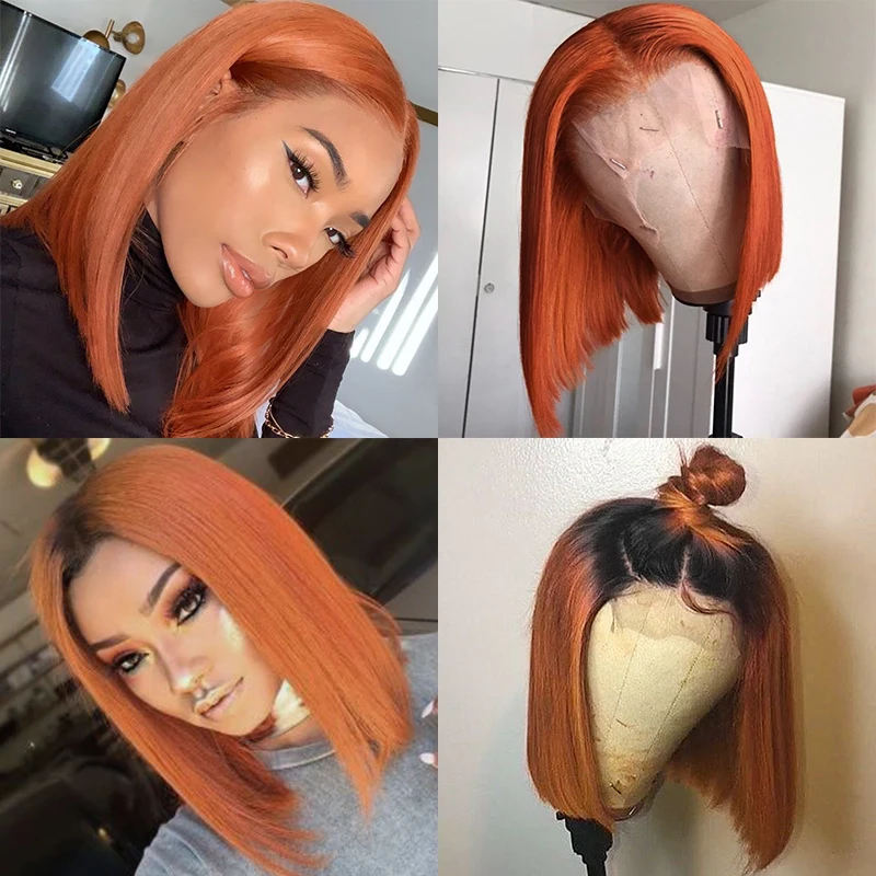 Ginger Orange Human Hair Lace Wigs 150 Pre Plucked T Part Lace Wigs Ombre Straight Brazilian Remy Short Bob Bleached Knots Human Hair Lace Wigs Aliexpress